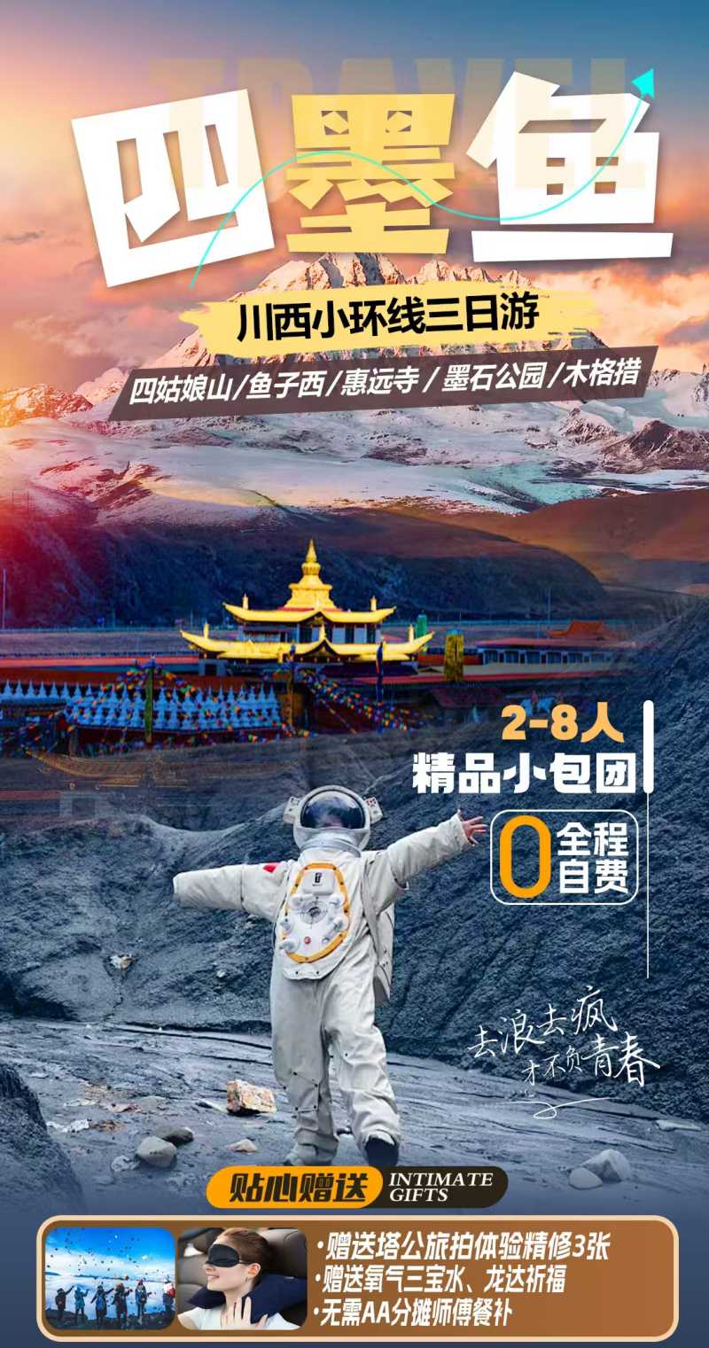 3、此行程所经地区海拔较高,请尽量不要剧烈运动以免高原反应,如有不适请及时与导游、景区工作人员联系。鱼子西为赠送景点,如因天气、堵车、交通管制等特殊原因不能前往,或者游客自愿放弃等主观原因;造成赠送项目没有参加的,没有任何退费,亦不换等价项目